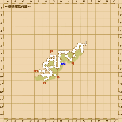 配置は、スタート地点から南にある船にスライム、北方面にカエル、全体的にリーチ&蟹。